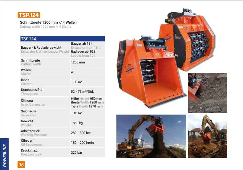 Zerkleinern und aufschließen von Erdklumpen, Separieren von Steinen, Ästen, Wurzeln usw. Körnung 0-60/80 mm