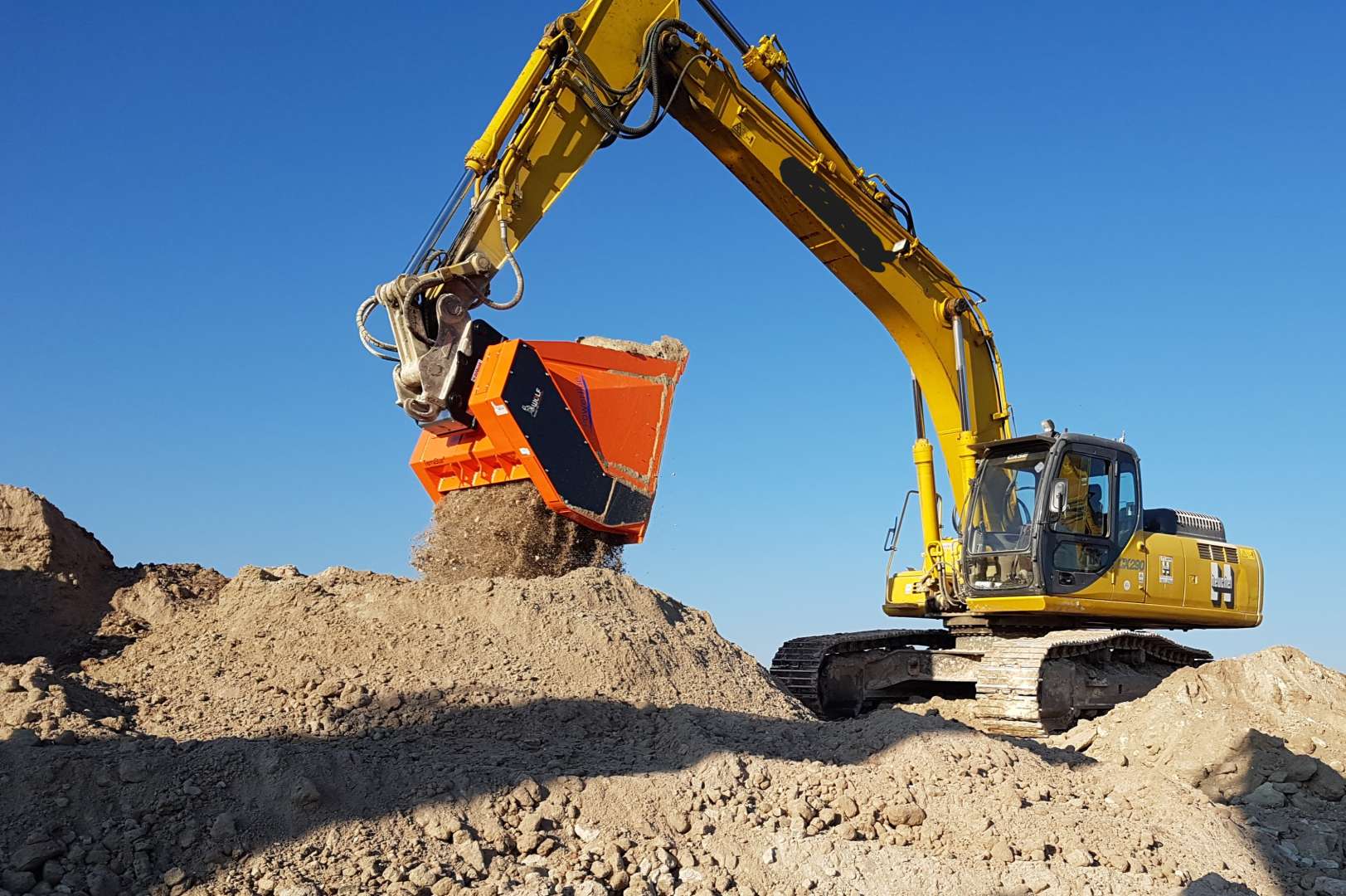 Belüften, Zerkleinern, Zerreißen, Umsetzen von Biomasse, Bioabfall und Kompost bei gleichzeitigem Trennen von Ästen, Wurzeln usw., die sich nicht zerkleinern lassen.