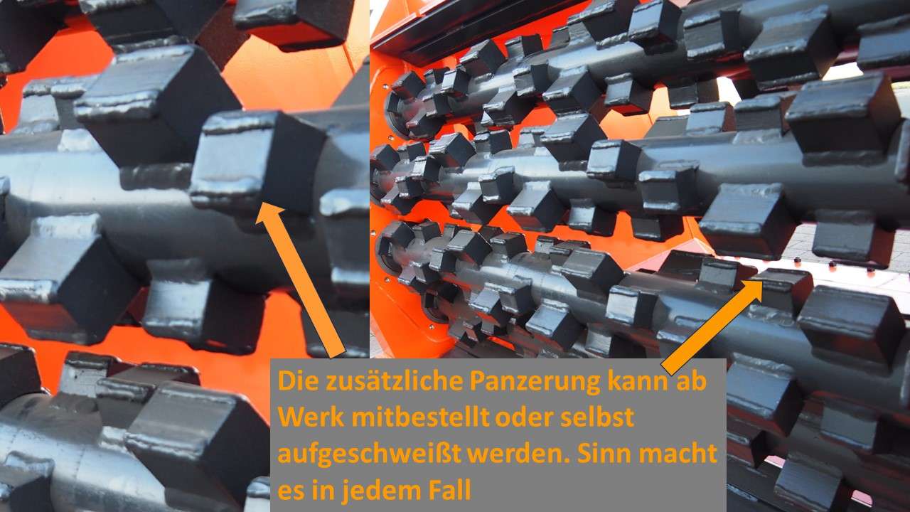 | Zusätzliche Panzerung: | in den Verschleißzonen mit Panzerdraht aufgeschweißt |