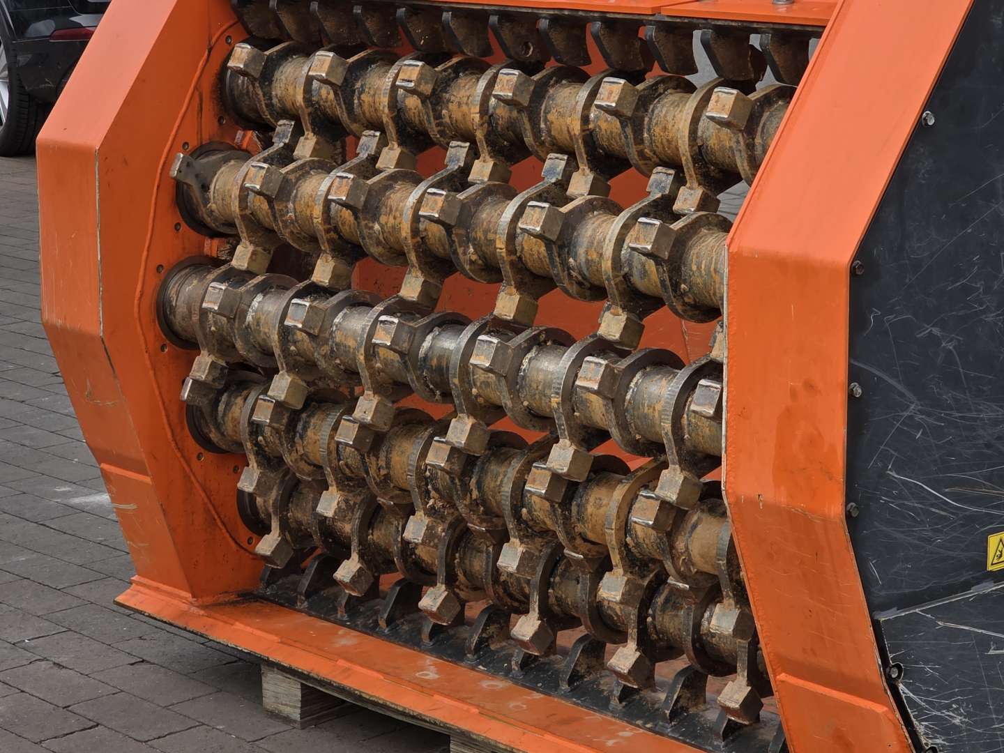 eingebaut sind Blockscheibenwellen BS252 die konstruiert sind, um sehr nasse und hartnäckig verklumpte Böden aufzuschließen, Erdklumpen zu zerkleinern und Zuschlagstoffe wie Kalk oder Mischbinder mit hohem Durchsatz unterzumischen. Der so ausgerüstete Terra-Star ermöglicht eine Bodenbearbeitung von andere Geräte schon lange ihren Dienst einstellen.