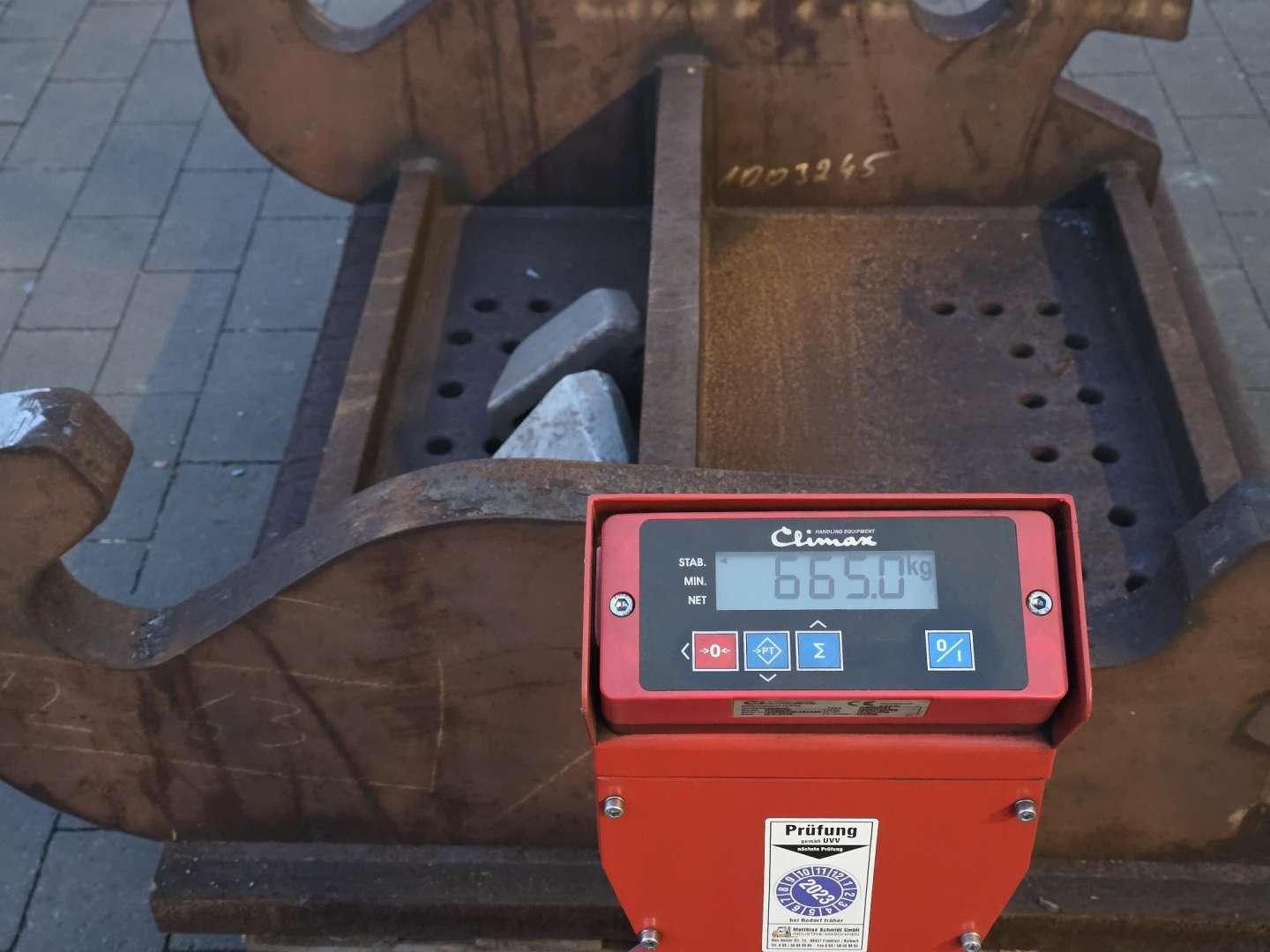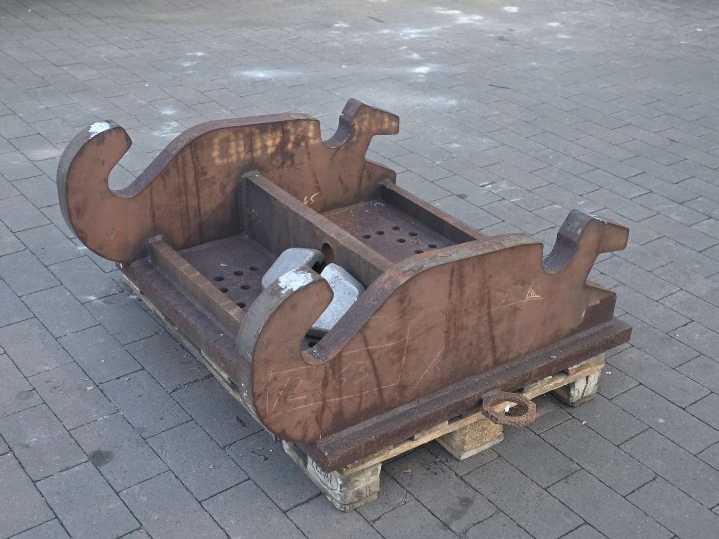 Es handelt sich bei der Kopfplatte um ein stabiles und solides Produkt der Fa. Wolf Technik für Baumaschinen.
