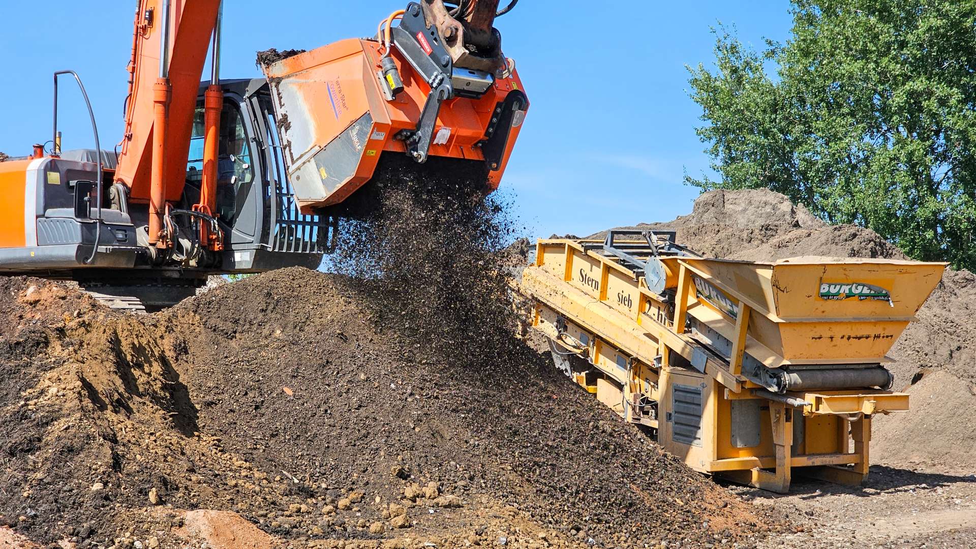 Für Bagger & Radlader ab 17 bzw. 9 TonnenDer Terra-Star® Powerline Schaufelseparator ist für Bagger ab 16 Tonnen und Radlader ab 9 Tonnen konzipiert. Wie alle unsere Siebschaufeln ist auch der Powerline auf optimalen Materialfluss getrimmt. Der Boden und die Seitenwände sind glatt und es gibt keine störende Bauteile oder Kanten. Selbst sehr nasse Erde oder Erde durchsetzt mit Ästen und Gehölz kann in einem Arbeitsgang aufbereitet werden. Die hohe Leistung des Powerline garantiert eine enorme Effektivität. Die Laufzeit einer Schaufelfüllung beträgt nur ca. 30 Sekunden.